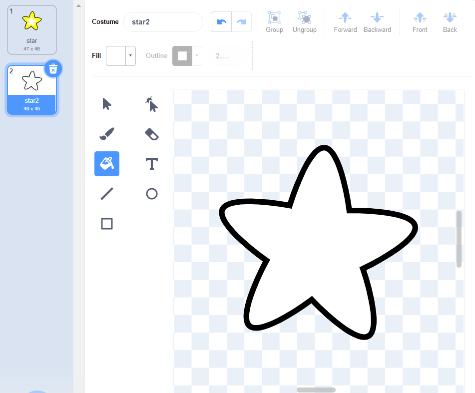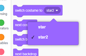 1. First, you want to add another costume to your star sprite with a different colour. This is what it'll look like when it twinkles.